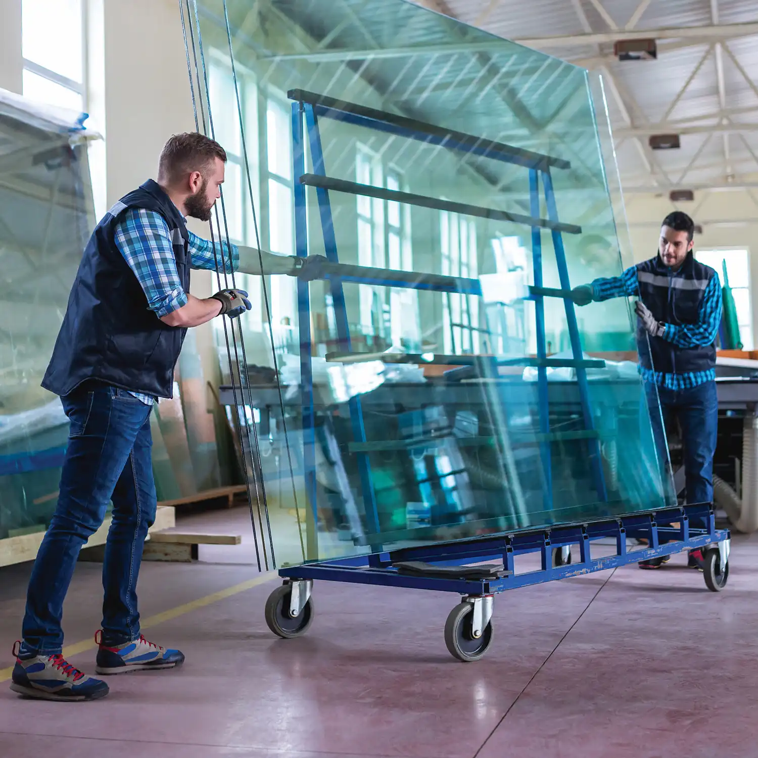 Vindusproduksjon | Håndtering og reparasjon av glass og vinduer | Tapping av flasker | Håndtering av metallplater | Håndtering av tungt utstyr.
